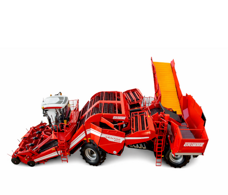 4-rzędowego samojezdnego kombajnu do ziemniaków można rozłożyć do pozycji roboczej lub złożyć do transportu. Główne części wykonane są z odlewu ciśnieniowego (metalu), a drobne elementy z tworzywa sztucznego.