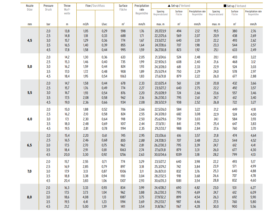 Dostępny rozmiar dysz: 4,5 - 8,0 mm